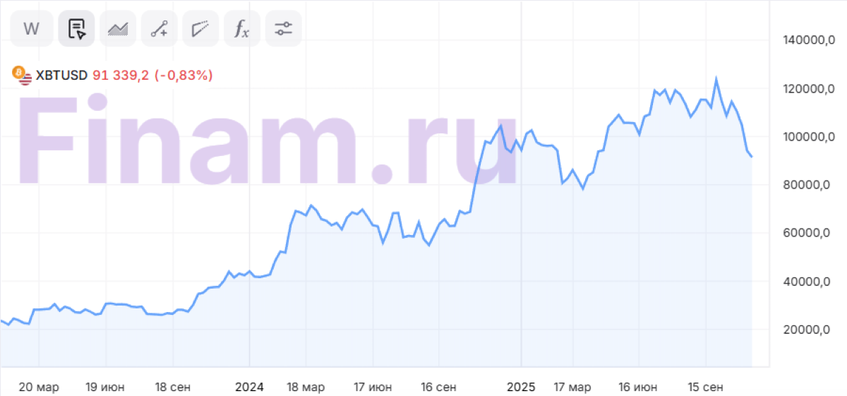 18 ноября биткоин падал ниже $90000, а от пикового значения на отметке чуть выше $126000 актив уже потерял примерно 30%. Стоимость эфира опускалась ниже психологически важного уровня в $3000.